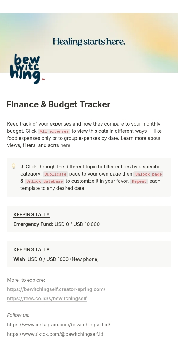 The Notion Finance & Budget Tracker is your minimalist money management system, designed for freelancers, creatives, and 9-to-5ers who want to track their income, spending, and savings goals all in one place. Whether you're living paycheck to paycheck or stacking coins for a dream goal, this template keeps your financial life clean, clear, and on track.